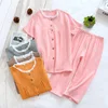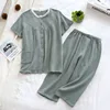 Summer Thin Ladies 100% Cotton Pajamas Two-piece Short-sleeved Cropped Pants Plus Size Home Service Suit Pajama Set Women