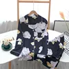 Spring and Autumn Pure Cotton Cotton Silk Viscose Pajamas Set Ladies Summer Long Sleeve Pants Sweet Homewear Two Piece Set