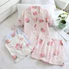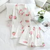Ladies Strawberry Cotton Double Gauze Short-sleeved Shorts Pajamas Suit Cute and Comfortable Home Service Women Pink