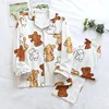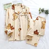 Japanese New Style Autumn and Winter Knitted Cotton Ladies Pajamas Suit Spring and Autumn Long-sleeved Cute Bear Home Service