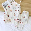 Spring and Autumn Strawberry Girl Cotton Crepe Cloth Pajamas Suit Cartoon Home Service Comfortable Two Piece Set Kawaii