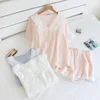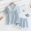 Japanese Summer Ladies New Pajamas Two-piece 100% Cotton Crepe Ins Wind Short-sleeved Shorts Fresh and Thin Home Service Cover