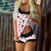 Butterfly Print Women's Pajamas Set V-Neck Stretch Satin Lace Sexy Lingerie Sleepwear Pajamas Home Wear Night Wear