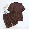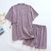 Summer New Style Japanese Kimono Pajamas Suit Couple Thin Cotton Crepe Men's Short-Sleeved Shorts Two-piece Women's Home Service