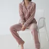 Simple women's velvet long-sleeved top and trousers set autumn and winter pajamas women's fashion home service pajama set women