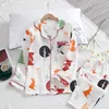 Spring and Autumn New Cotton Double Gauze Long-sleeved Trousers Pajamas Set Cartoon Squirrel Home Service Pajamas for Women