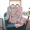 Japanese Style New Spring and Autumn Ladies Pajamas Two-piece Cotton Gauze Long-sleeved Trousers Flower Suit Home Service Women