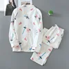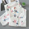 Japanese Spring and Autumn 100% Cotton Gauze Women's Pajamas Set, Thin Soft Home Wear, Long-sleeved Trousers Pajamas for Women