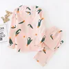 Style Spring and Autumn New Ladies Pajamas Suit Cotton Double Gauze Long-sleeved Trousers Yukata Home Service Woman