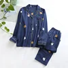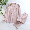 Japanese New Style Cotton Couple Pajamas Suit Women Spring and Autumn Long-sleeved Two-piece Men Autumn and Winter Home Service