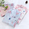 2021 Japanese Spring and Summer Pajamas Two-piece 100% Cotton Gauze Ladies Long-sleeved Cartoon Casual Home Service Suit Thin