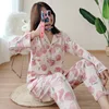 Japanese Spring and Autumn Ladies New Cotton Cardigan Long-sleeved Trousers Suit Fruit Cute Home Service Suit Autumn and Winter