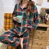 Cute Grid Girls Pajamas Set Korean Autumn Winter New Long Sleeve Leisure Sleepwear Women Loose Nightwear Homewear Suit