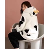 Women Animal Fleece Pajamas Winter Robes Home Clothe Flannel Pant Sleepwear Split Set Cartoon Cow Thick Couple Hooded Nightgown