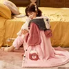 Pajama Woman Winter Plush Mid-length Nightgown Plus Fleece Trousers Bathrobe Loose Flannel Home Service Suit Women