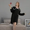 Sailor Collar Pajamas Spring and Summer Autumn Leisure Long-Sleeved Nightdress Underwear Pullover Women Can Outerwear Homewear