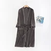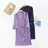 Spring and Summer Mid-Length Japanese Home Leisure Couple Nightgown Hotel Solid Color Long Sleeve Bathrobe