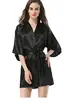 Black Women's Faux Silk Robe Bath Gown Hot Sale Kimono Yukata Bathrobe Solid Color Sleepwear Bridesmaid Robes
