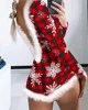 Women Fashion Christmas Snowflake elk Print Romper Bodysuit Backless Short Jumpsuit Fluffy Trim Rompers
