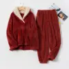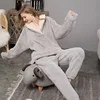 Winter pajamas suits women's thickened home clothes long sleeve tops elastic pants 2 piece sets