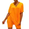Fashionable Summer Sleepwear V Neck Women Short Sleeve Split T-shirt Shorts Set Pajamas Sleepwear Set