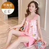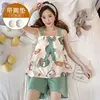 40-90kg Plus Size Pajamas Women Summer Loose Suspender Shorts Suit Women Cartoon Pajamas Ladies Home Service