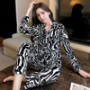 Gold Velvet Pajamas for Women Leopard Print Long-sleeved Spring and Winter Cardigan Home Service Sleepwear Women's Pajamas Set