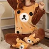 New Women Pajama Set Autumn Winter Pajamas Flannel Cartoon Thick Warm Women Sleepwear Cute Animal Female Cotton Homewear Piece