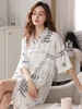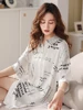 Summer Ice Silk Sleepshirts Women Nightgown Mid-sleeve Sleepwear Dormir Bedgown Nightdress Ladies Satin Leisure Wear Nightdress