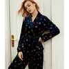 Sleeve Shirt Pants Homewear Button Velour Sleepwear 2 Piece/Set Star Printed Sexy Velvet Pajamas Set Pyjama Long