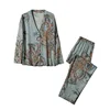 Japanese new spring and autumn new style cotton viscose ladies long-sleeved suit feather big flower home service pijamas women