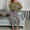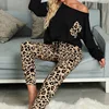 2021 Leopard Homewear Suits Women Autumn Casual T Shirts Drawstring Sweatpants Lounge Wear Fashion Pajama Sets Elastic Sleepwear