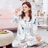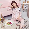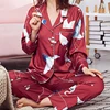 Animals Printed Soft Sleepwear Lady Pajamas Imitation Silk Simple Style Pajamas Women's Pajamas Set Long-sleeve Trousers