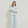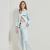 Women's Pajamas Spring New Satin Silk Stripe Stitching Contrast Long Trousers Home Service Pajamas Set Home Clothes for Women