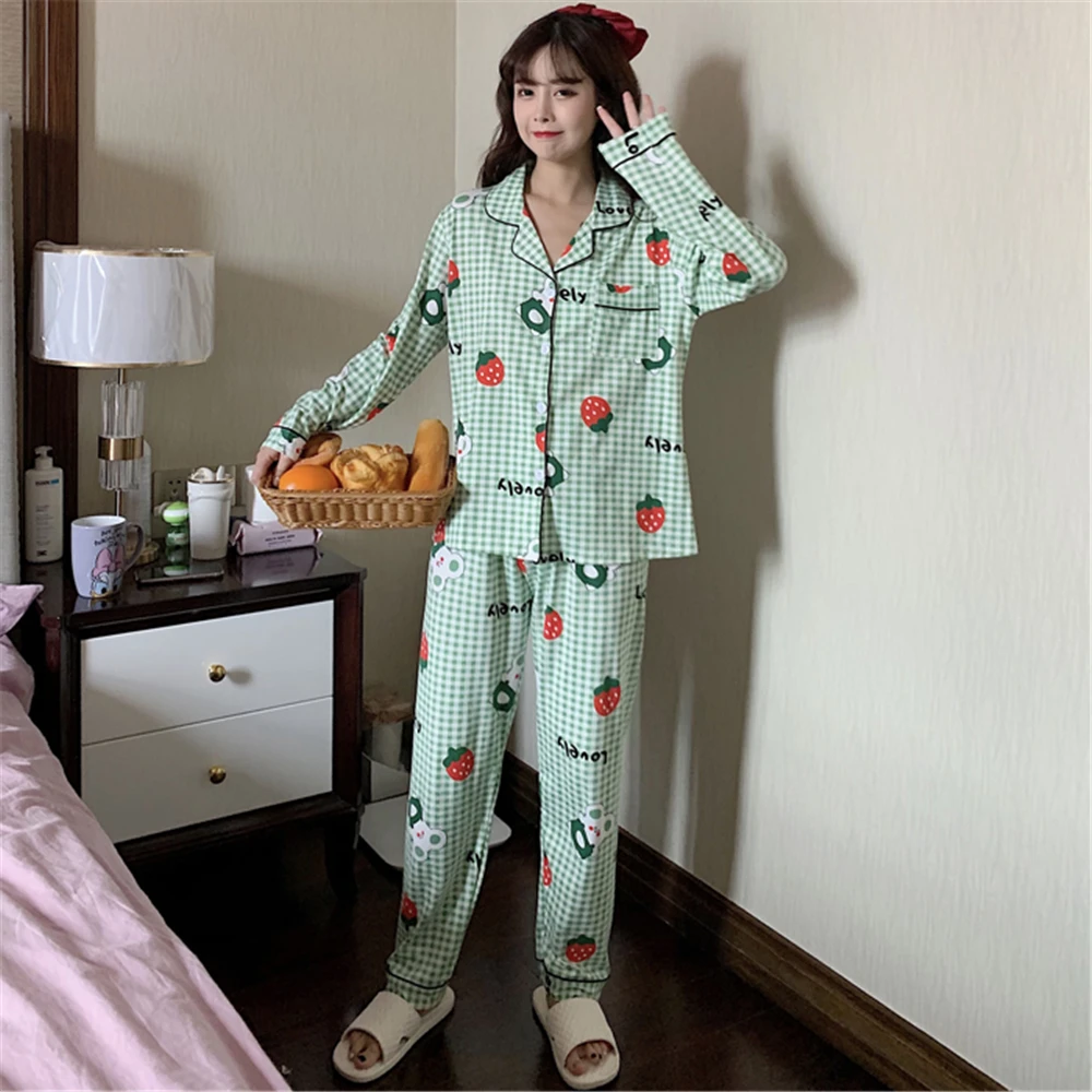 Pyjamas Printed Sleepwear Pajamas Set Long Sleeve Comfort Loose Homewear Autumn Women CottonLarge Size Femme