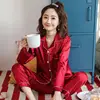 Women's Rayon Silk Pajamas Sexy Stripe Sleepwear Set Women Pajama Set 2Piece/Suit Top Long Sleeve Belt Shirt Pant Big Homewear