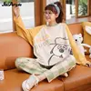 Plus Size Pajamas Women Autumn Cartoon Pijamas Two-piece Korean Cute Casual Sleepwear Set Female Loose Nightie Home Clothes Suit