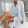 Hiloc White Sexy Female For Sleep Tops For Women Summer Pajamas Long Sleeve Satin Night Dress Home Wear Nightie 2021 Sleepwear