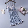 Nightgown Women Faux Silk Chemise Nightwear Home Gown Sexy V-Neck Sleep Sleepwear Nightdress Sleevless Female Nighty Dress