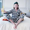 Sleepwear Pajamas Set Spring Silk Fall Women Homedress Trousers Nightgown DZA223