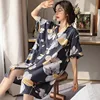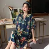 Oversize Summer Print Sleepwear Womens Nighty Bathrobe Sleep Top Homewear Lounge Nightwear Pocket Robes Casual Loose Nightgown