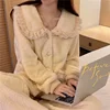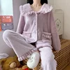 QWEEK Winter Pajamas Coral Fleece Clothing Sets Women Kawaii Apricot Purple Lace Pyjamas Princess Style Loungewear Pijamas Cute