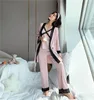 Three Pieces Women Pajamas Sets Winter Warm Pants Pajamas Lace edge Female Sleep Homewear Robe Nightdress 215