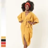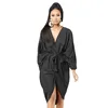 2021 New Homewear Pure Color Fashion Casual Loose Comfortable V-neck Cardigan Homewear Nine-Sleeve Robe Nightgown