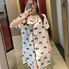 Print Night Dress Satin Sleepshirt Summer Women Nightgown Button-Down Sleepwear V-neck Nightdress Casual Home Wear Sleep Gown