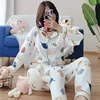 2021 Thick Warm Winter Pajamas For Women 100%Cotton Home Suit Cartoon Cat Printed Sleepwear Female 2Pcs Long Sleeve Homewear Set