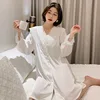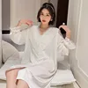 Nightdress Girl's Summer Sleepwear Ice Silk Satin Nightgown Loose White Sleep Sleepdress Home Gown With Lace Nighty Dress