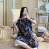 Cotton Blend Sleep Dress Women Nightgown Casual Print Nightdress Summer Intimate Lingerie Home Dressing Gown Lace Sleepwear