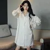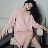Bride Lace V-Neck Sleep Shirt Summer Women Nightwear Sleepwear Satin Button-down Nightshirt Robe Kimono Wedding Gown Loungewear