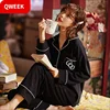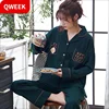 QWEEK Sleepwear Women's Cotton Pajamas Two Piece Set Sleepwear Home Suit Kawaii Cartoon Nightwear Nightie for Lady Spring Autumn